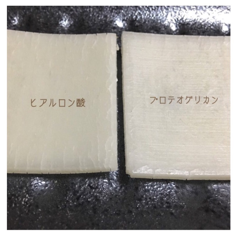 プロテオグリカンを塗布した方はひび割れ方がヒアルロン酸のみの方と比べて一目瞭然。