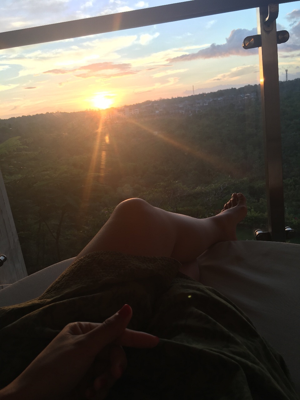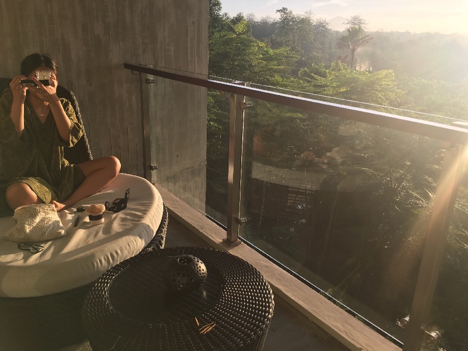 GM☀️BALI AYA..E Diary 作成日: 2016.6.24 もー、うきうきして早起きしちゃうよね☀️日の出見ながらたそがれる〜7時30分☀️最高なベッドがバルコニーに❤️風が気持ちい〜〜からメイクもここでしちゃお〜っと朝日がきもちぃ〜〜♡