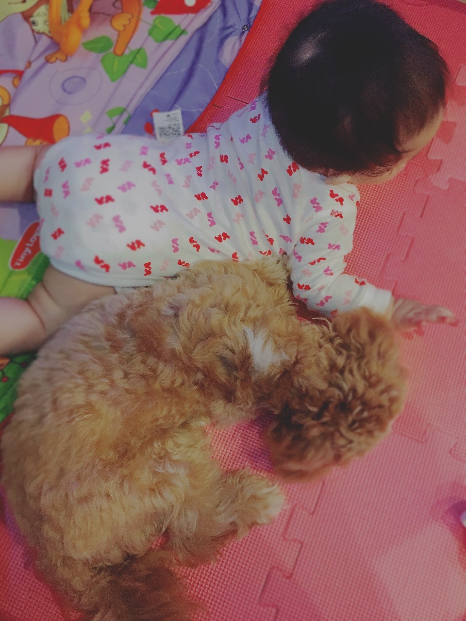 くっつき虫🐛💞 miku Diary 作成日: 2016.10.8 麦が娘にベッタリ👶🏻🐶💜こぉみると麦も本当おっきくなったな。。娘と一緒に麦も順調に成長しました👍🏽👍🏽笑麦は娘と遊びたいんだけどまだ娘の行動が読めなくていきなり叫んだり床をバンバン叩いたりいきなり毛を引っ張られたりするからか、少しビビってる様子。😹それがみててめっちゃ面白くて可愛い😻💞たまに麦に耳舐められてめっちゃうっとうしそうにする娘も面白い😹本当にみてて飽きない2人です。👶🏻🐶💜Instagram↪︎ http://instagram.com/miku_8639