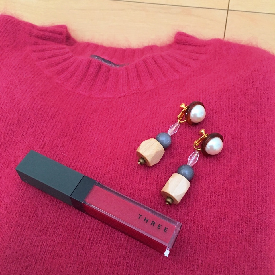 knit🍒 miki Diary 作成日: 2016.11.9 今日は、これ❤️💛ローズベリーの色味が可愛くて少しアンゴラの入ってるフワフワknit🍒アンゴラは少しだけだから毛はそんなに飛ばないやつ◎イヤリングは新作の✨今日は、朝からaries LINEに刺激の強い写メが届いた😂😂😂目が覚めました←←いってきまーーーす♡