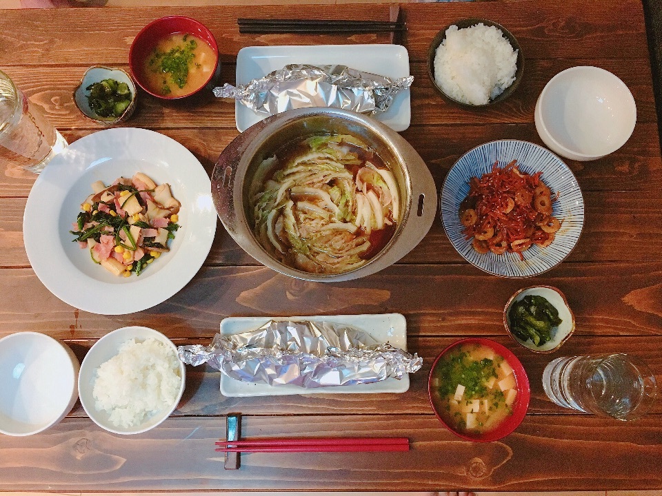 ✔️エリンギベーコンほうれん草コーンのバター炒め