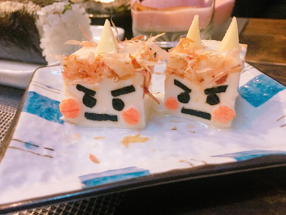 チラッとみえる鬼さん冷奴のアップ