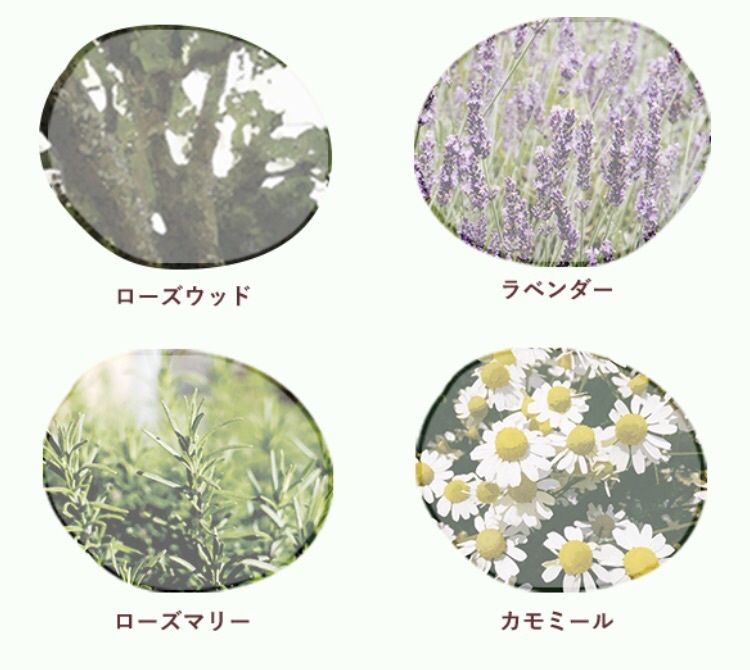 ローズウッド、ラベンダー、カモミール、ローズマリーを掛け合わせたもので