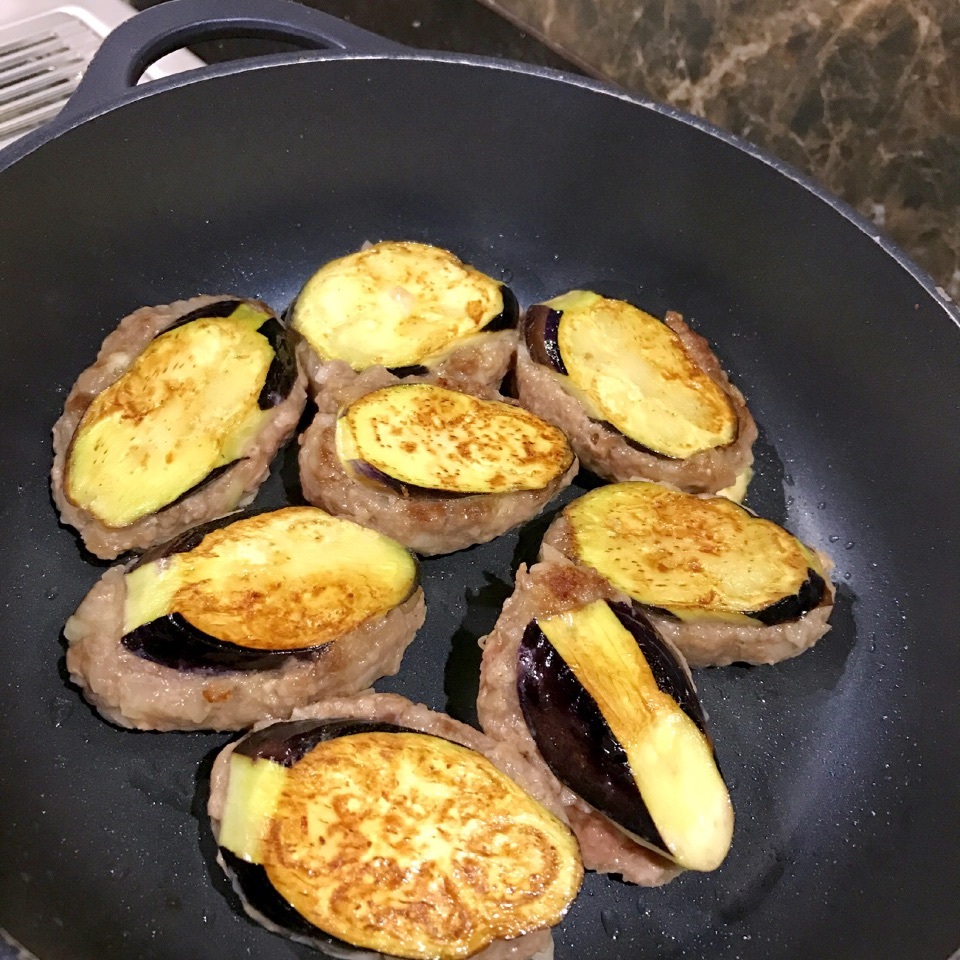 合挽きの粗挽き肉を使ってボリュームありのはさみ焼きを作りました♪( ´θ`)