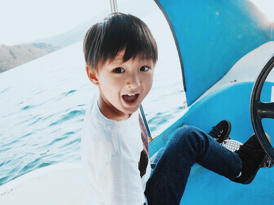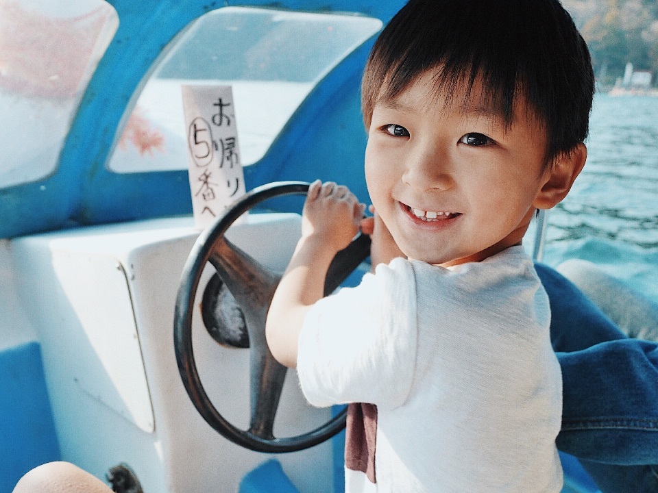 芦ノ湖で、れおがスワンボートに乗りたがってたから3人でシュールなスワンボート乗った😁👌🏼