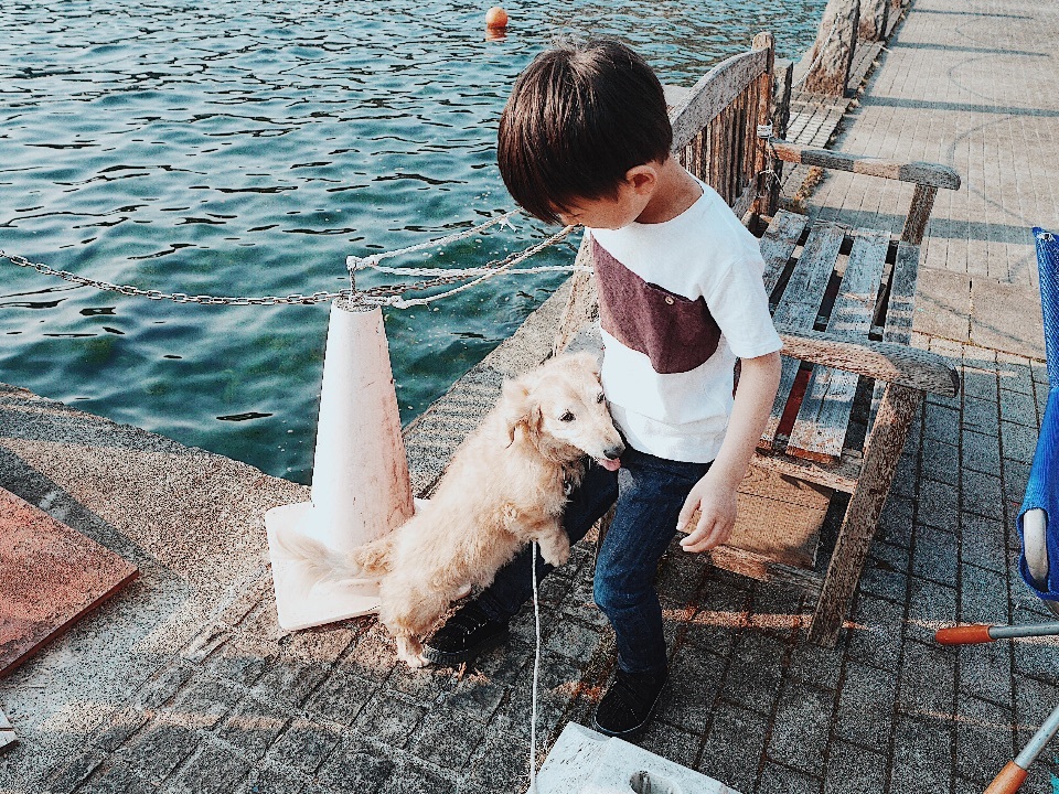 スワンボートの看板犬が、めちゃれおに懐いてて可愛かったな🐶❤