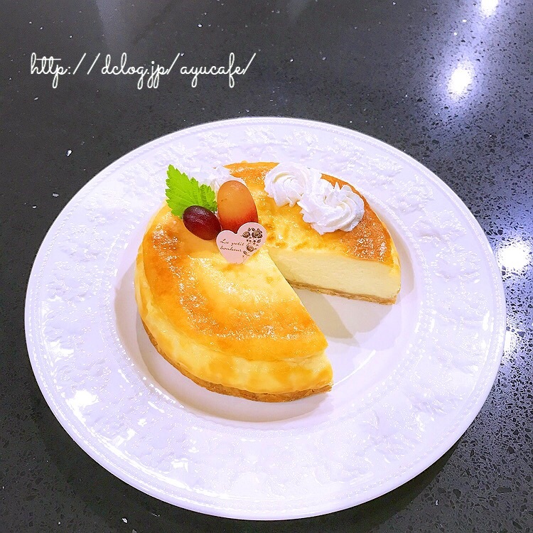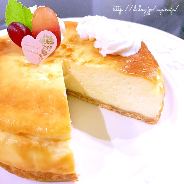 *ベイクドチーズケーキ詳細* Ayu Diary 作成日: 2017.8.2 クリームチーズはフィラデルフィアとkiriを少し混ぜてつくりました♡濃厚なめらかで最高😍😍 高さをだしたかったので15cm型で 焼きましたぶどうとホイップクリームをトッピング✨