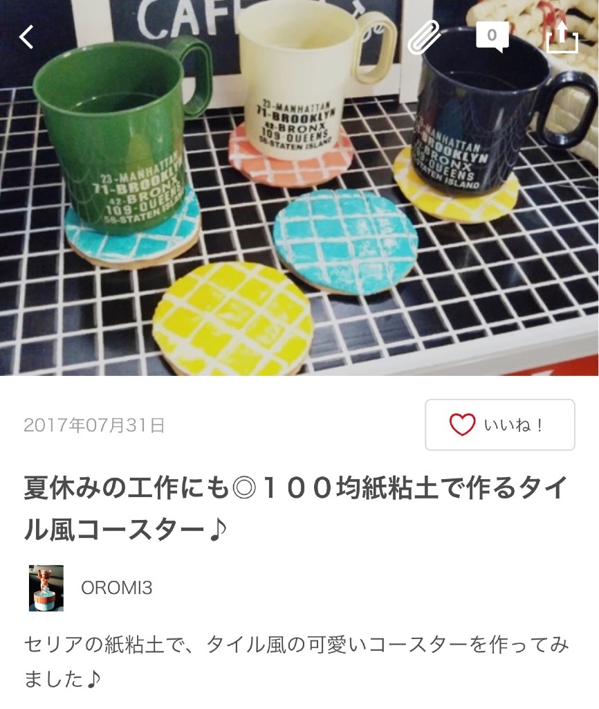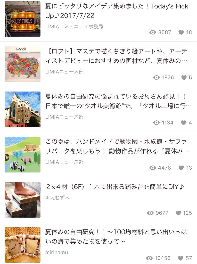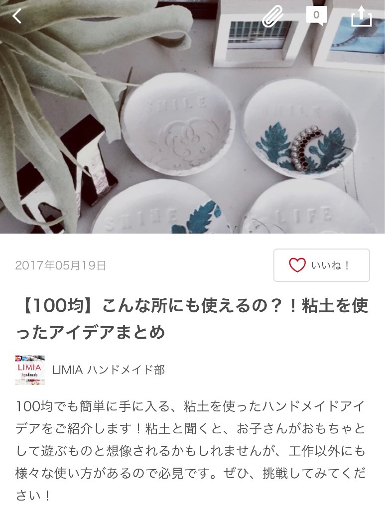 桃フェア🍑💕100均オシャレDIY特集✨ 野田華子(のだ はなこ) Diary 作成日: 2017.8.8 こんにちは💕日曜はパパのスーツを新調しなきゃでお買い物dayでした。デパ地下も寄ったんだけど桃フェアで美味しそうな桃スイーツがたくさん🍑TAKANOと迷ったんだけど、FOUNDRYの桃ケーキ達をお買い上げ🤤桃大好きなパパはシレッと2つ選んでた。笑桃たっぷりだったから甘すぎなくてさっぱり食べられて美味しすぎました🤤紅茶と桃のタルト美味しすぎた💕また桃フェアやってるうちに行きたいなーーー❣️❤️❤️❤️❤️❤️❤️❤️❤️ そろそろ自由研究にもとりかからなければ〜😭にいなはあれでもないこれでもないとまだ迷い中🌀大和は自由研究はないんだけど、貯金箱作りたい〜!って言ってたから、一緒に作ったよ!親バカながらこの魚とかこのヒトデとかこの魚とか上手👏💕最近の紙粘土(木粘土?)ってすごいね❣️年々改良されて軽くなって練りやすくなってる気がする❣️100均の紙粘土でこんな本格的なインテリアが作れたりするって記事も読んで紙粘土侮れないな〜と思った。笑この記事は最近のお気に入りアプリ💓LIMIA(リミア)住まい・暮らしのアプリで、まさに今知りたい情報がたくさんつまってるアプリです🤤💓コンテンツはタイムライン無印良品100均家事収納ランキングDIY生活の知恵インテリアハンドメイド雑貨住まい建築おでかけなどなど。ランキングでは流行りのオキシクリーンネタや、シンデレラフィットする収納アイテムアイテムなど紹介されてたよ💕中でも感動したのが流行りの100均DIY❣️私は絶対自分じゃこういうの思いつかないから目からウロコ状態で読み漁ってます👀✨100均のグッズとは思えないほどのオシャレなフォト✨100均行きたくなる欲が高まる🤣💓おすすめキーワードなんて、まさに今知りたい❣️ってキーワードばっかり👏フランフラン・無印良品・IKEA・フライングタイガーなどを使ったインテリアコーディネートなども紹介されていて、写真をみてるだけでモチベーションがあがる😍💓例えば無印良品だと、、、アイデアの記事が327件❣️フォトが2468件❣️いつもお店を流し見してめぼしい物を買ったりしてたけど、ここで予習しておけば無駄買いもしないし、インテリアのヴィジョンをしっかりもってお買い物できる💓あと小学生ママ必見!🔍自由研究ってキーワード入れたらたくさん出てきたよ〜✨うちの学校、キットとか使っちゃいけない決まりがあるから自由研究ネタ切れだからこういうネタは本当に助かる🙏💦8月末まで夏っぽいアイテムフォトコンテストもやっていて旅行券など結構豪華だったから投稿してみよっかな🤤笑無料アプリなのでぜひぜひ💓こちらからダウンロードできます💁 LIMIA(リミア)ではでは💓