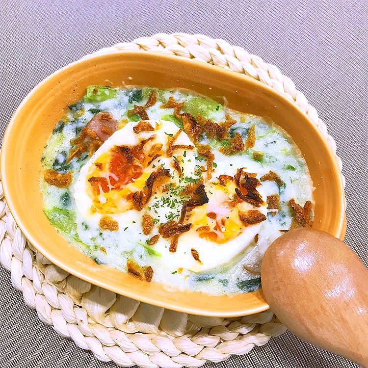 【小麦粉いらずの!小松菜とゆで卵のグラタン】
