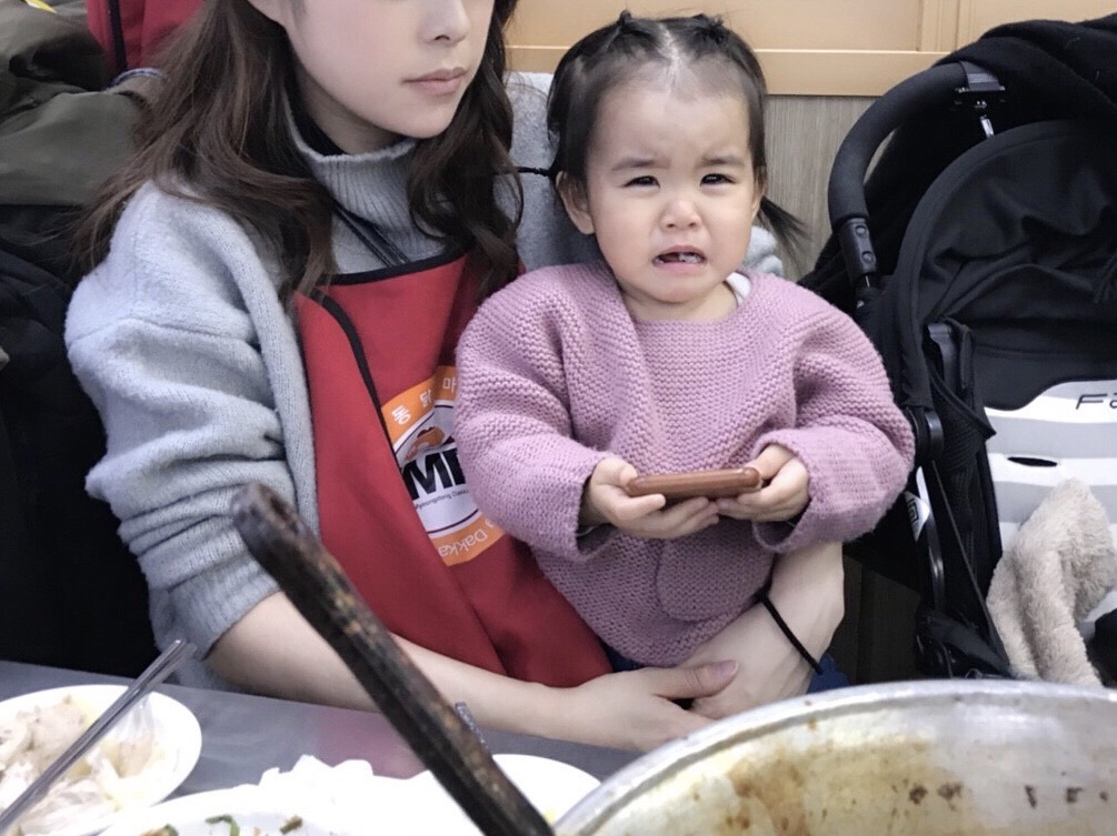 寝起きで 泣きながらタッカンマリを食べる 娘 。笑