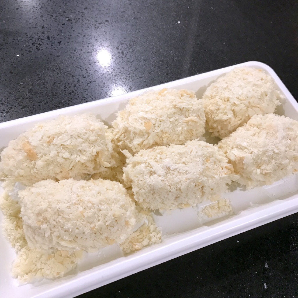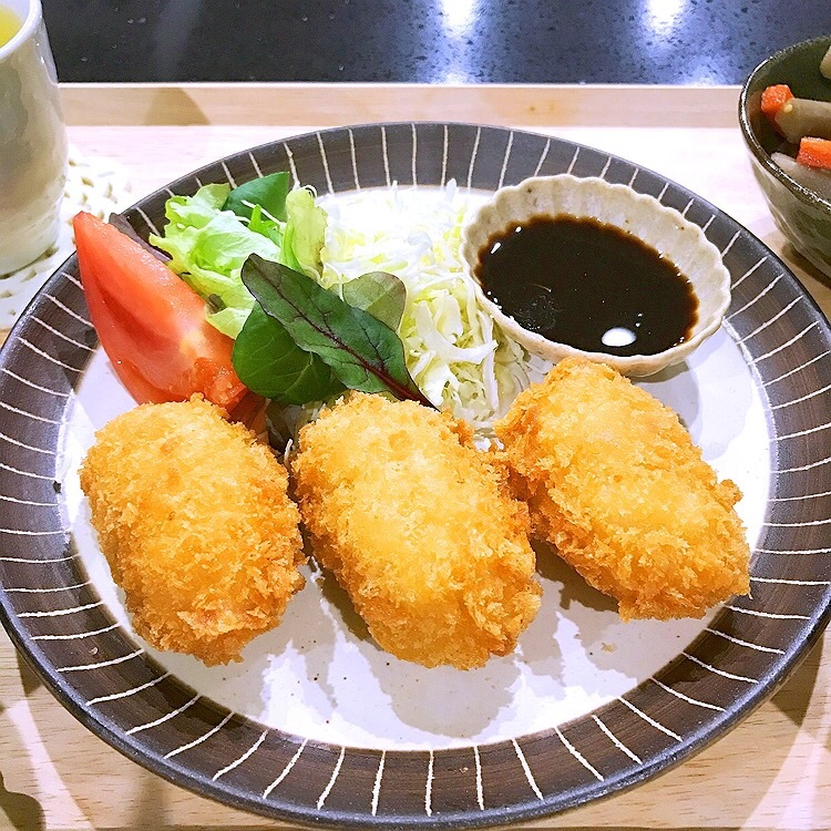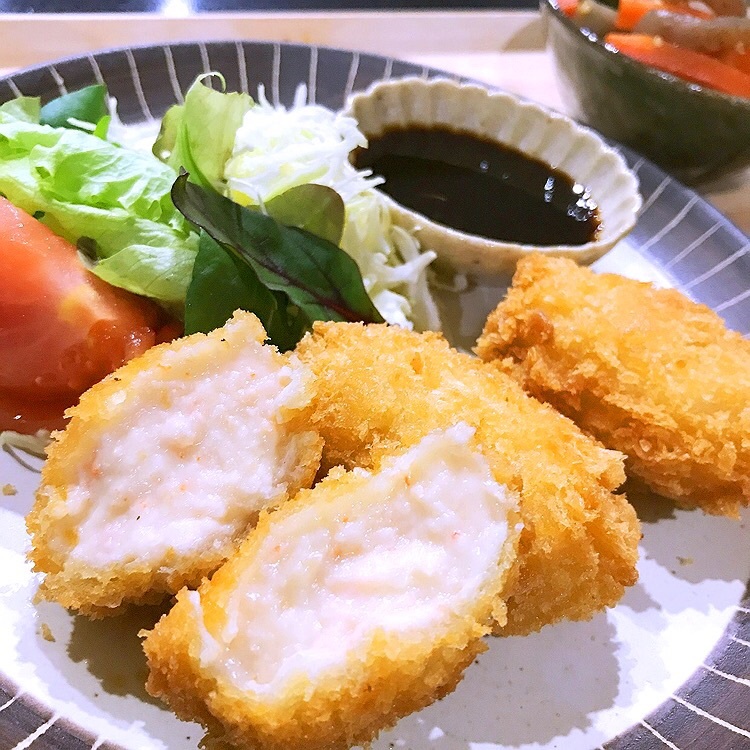 きのうの夕食に紅ずわい蟹のクリームコロッケを揚げてみたよ♡