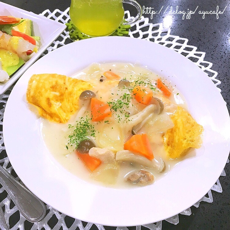 オムライスにクリームシューを合わせたオムシチュー♡♡