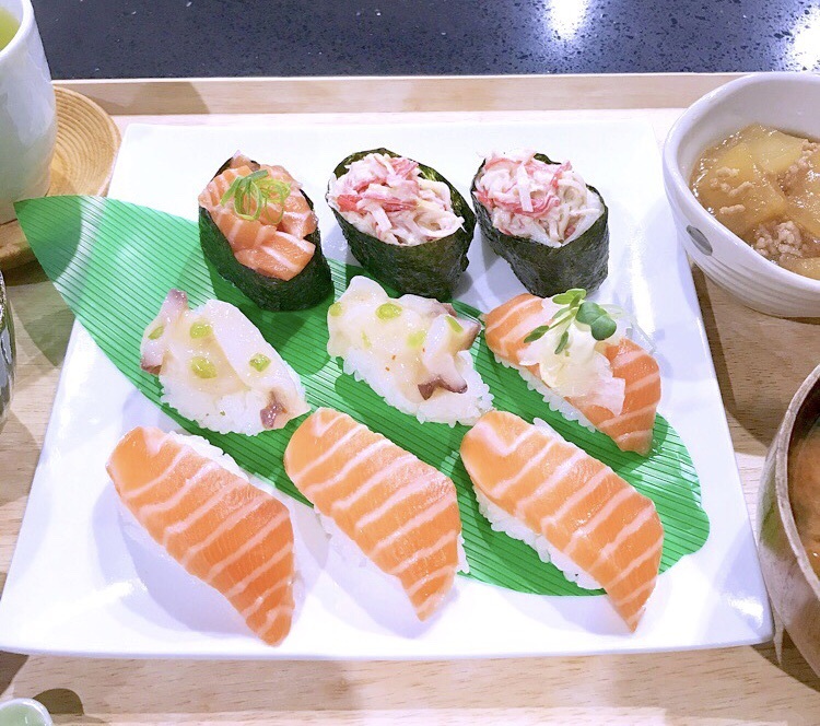 *お寿司* Ayu Diary 作成日: 2018.3.20 お寿司サーモンにぎりサーモン軍艦サーモンオニオンマヨたこわさびカニカマサラダ美味しそうなサーモン見つけたから大好きな握り寿司にしてみました(≧∇≦)