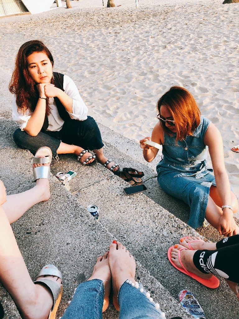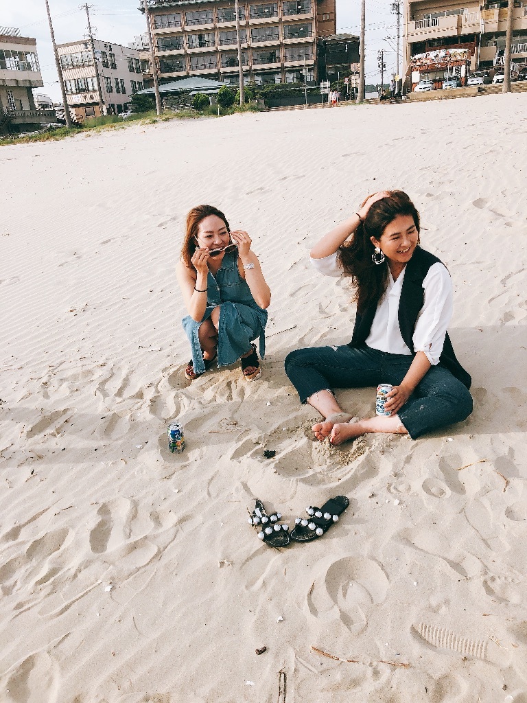 Beach chill🌴💕 AYA..E Diary 作成日: 2018.5.29 Beachでchill🌴🌞そして乾杯〜〜〜❤️ ❤️ ❤️最高なんですけどー😍❤️すきな音楽流してみんなで黄昏る☺️💕全然暑くなくて心地いいの〜人も全然いなくて、この季節に海来ることってあんまりないからめちゃくちゃよかったなぁ♡何時間でも喋ってれるなぁ本当わお風呂からのごはんだったけどみんなビーチから離れたくなくてお風呂わ後回し😉❤️笑
