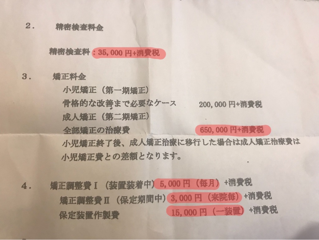 長女歯科矯正🌿費用、時期 野田華子(のだ はなこ) Diary 作成日: 2018.6.5 こんにちは💕 バーベキューのナニコレ写真🤣笑さてさて、娘の歯科矯正!乳歯から永久歯に全部変わったタイミングで歯科矯正をしようと色々歯医者さん巡りをしていたのですが、色々相談した結果、延期になりました🤚延期の理由は12歳臼歯がまだ生えてないので、生え揃った後にまた歯が動いてからスタートでも良い、というのとここ数年の身長の伸び具合も見てもらった結果、まだまだ身長が伸びるのと同時に顎の形も変わるから今、一度矯正方針を決めて固定してしまうと顎の形が変わった時にまた調整して合わせていくのが難しい、という結果でした!もう費用面はいつはじめても変わらないので身体の成長が止まって安定した状態から始めた方が矯正が終わった後の噛み合わせや並びが綺麗になるよ、と言われて納得したので延期の方向にしたよ!あくまで個人個人色々状態が違うだろうし、うちの娘の場合は、ですが☺️質問いただいた費用は3つ回ってみてこんな感じでしたよー!参考までに🙏こちらは総額こちらは月々の調整費用別平均、矯正費65万〜70万に精密検査3万〜3.5万月々の調整費用で5千円×12〜24ヶ月(もっと?)保定装置料1.5万って感じでした!分かってたけど、高いよね!笑私の子だから歯並びは良くないだろうな〜っていうのはまぁ予想ついてたし仕方ない😭永久歯になってからの矯正を考えてる方は身長の成長記録も持って行くといいみたいですよー!☺️(見ない所もあるかもですが)質問くれた方、諸々少しでも参考になったら嬉しいです🙏💕ではではー💕 http://www.instagram.com/noda.hanako