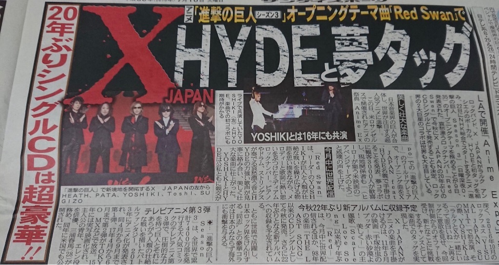 *すごいコラボ😍😍😍楽しみ👏* Ayu Diary 作成日: 2018.7.11 X JAPANにHYDEが加わっての新曲!!?(*☻-☻*)すごすぎるコラボ‼️‼️Xが20年ぶりのシングルにHYDEを迎え入れてくれたことすごく嬉しい😂✨✨絶対にカッコイイ曲になるんだろうな〜💓