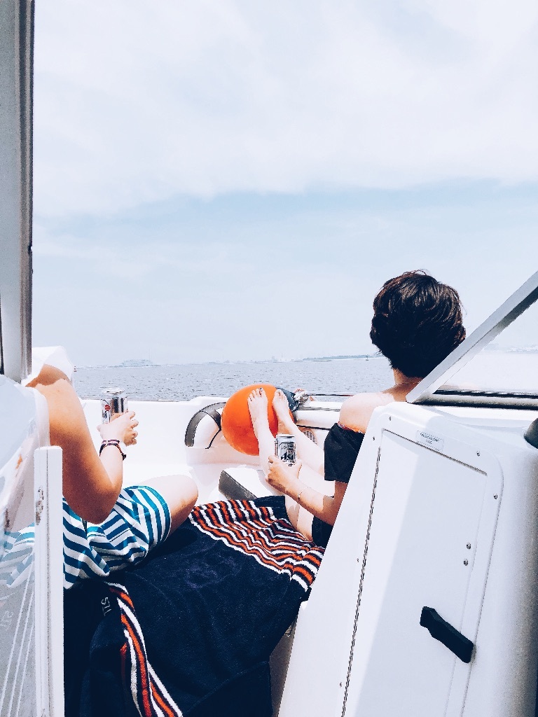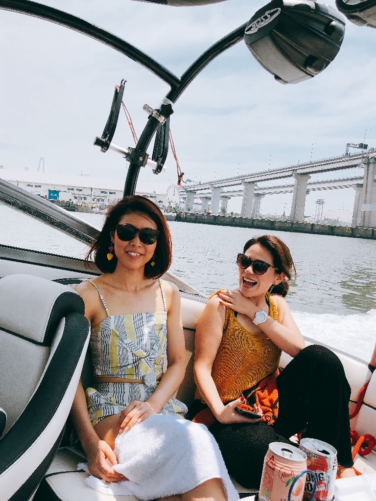 お肉が焼きあがるまで😋🛳💓 AYA..E Diary 作成日: 2018.7.19 お肉が焼きあがるまでクルージング😊🛳💓音楽ガンッガン💙めちゃ、気持ちいいやはり、夏わいいですな😍💙ジェットわすごく日焼けするし落ちるの怖いから乗れないけどクルーザーわ屋根ついてるから快適〜☺️❤️本当にこの3人楽しい😂❤️❤️❤️