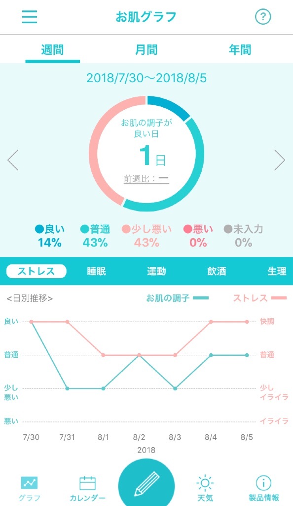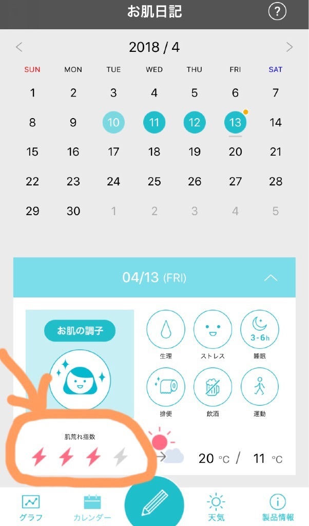 *肌荒れしやすい日を知る* Ayu Diary 作成日: 2018.8.6 Curel肌手帳http://dclog.jp/sa/bkfs_ayu_aa0004このアプリでお肌の管理をすることでいつどのような時に肌荒れがしやすいかなど分かってとても便利です^ ^毎日の簡単な記録でこのようなグラフができます✨肌荒れ指数はこのように知ることができるよ👇選んでタップしていくだけなのでとても簡単‼️記録していくと、もう少し色々と気をつけよう!改善していこう!って気持ちになれます😉無料アプリです✨Curel肌手帳http://dclog.jp/sa/bkfs_ayu_aa0004