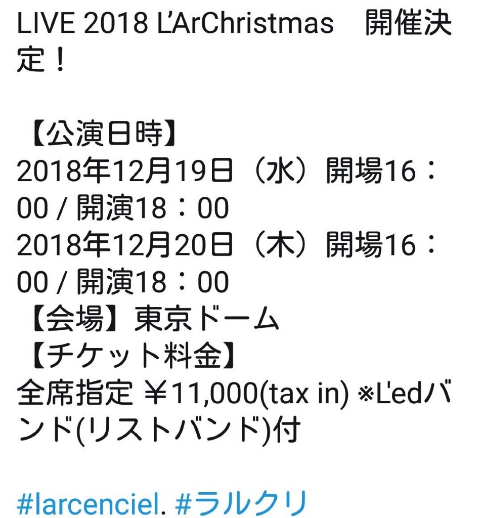今年はラルク動かないだろうなって諦めてたけど、クリスマスLIVEの発表きたー😭😭😭👏💕