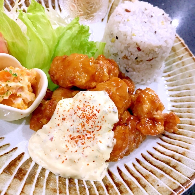 *もも肉でチキン南蛮* Ayu Diary 作成日: 2018.8.8 チキン南蛮いつもは胸肉でチキン南蛮作るけど、もも肉がお得だったので今回はもも肉で♡これはこれで柔らかくて美味しいんだよね😋揚げたてに甘酢だれを絡めちゃいました(๑>◡<๑)旦那が喜ぶメニューでした👏✨✨