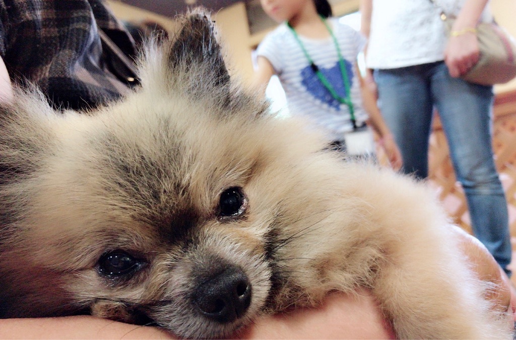 *犬とのふれあい🐶* Ayu Diary 作成日: 2018.8.12 犬とのふれあいコーナーでこの子がずっとひざに入ってきてくれて可愛かった☺️ドーベルマンの赤ちゃん??そのうちクークー寝始めた♡お母さんとこにはポメがきてたよ( ・∇・)