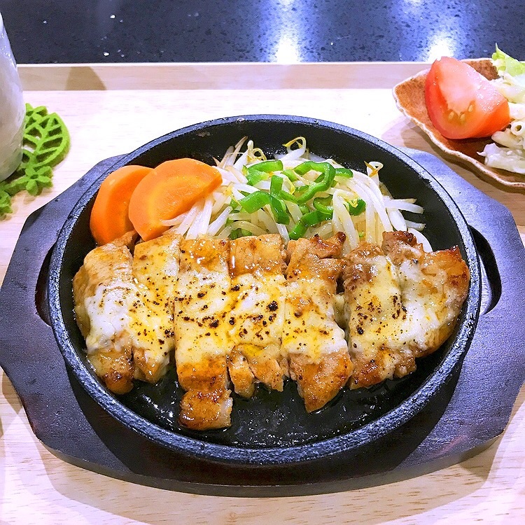 漬け込んだ厚切り豚のロース肉を焼いて、とろけるチーズをのせて炙りました🔥