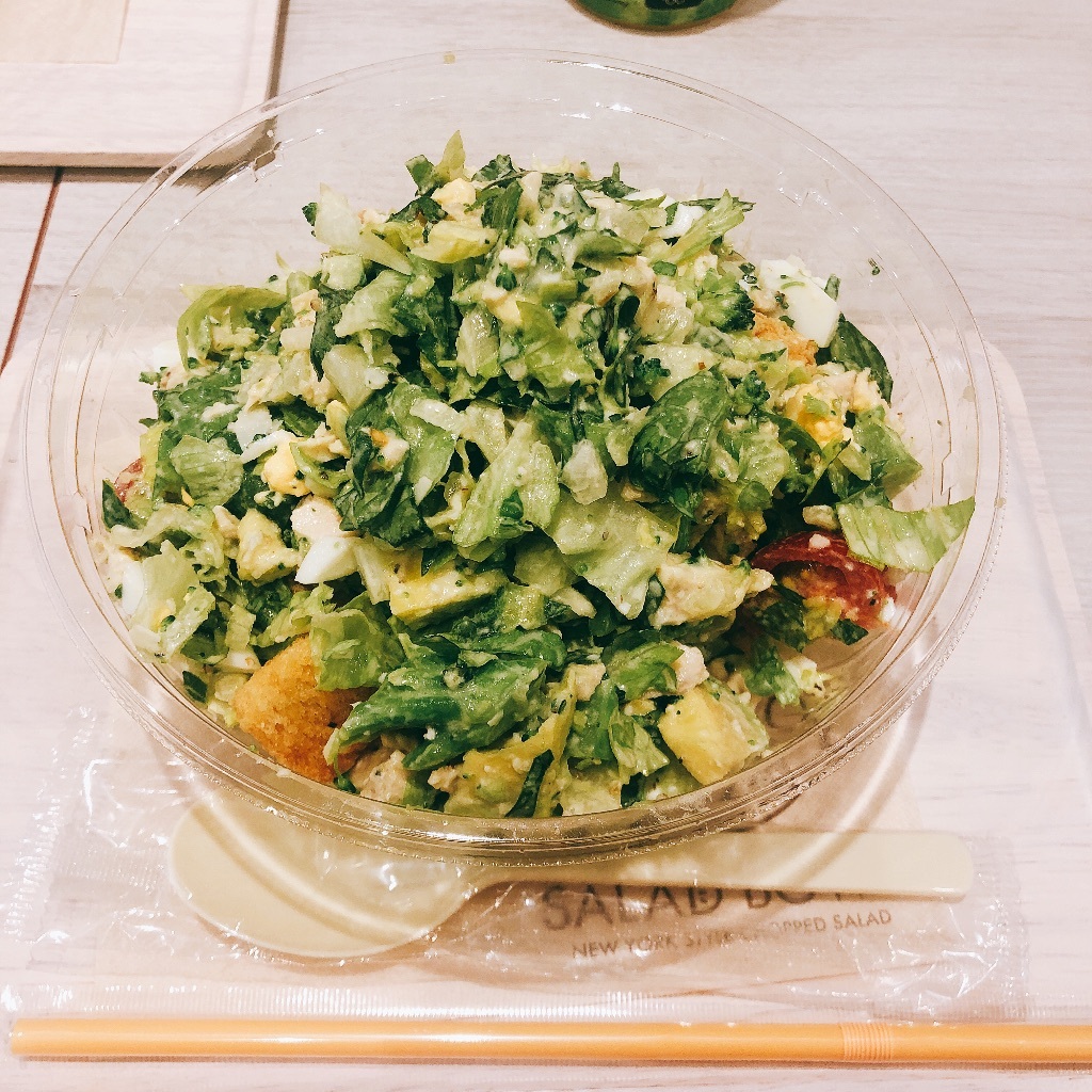 お肌にわ野菜が大事ですな☺️🥦🌽🥑💓 AYA..E Diary 作成日: 2018.10.1 今更 初めましてsalad bowl🍅🌽🥦💓シーザーサラダにブロッコリーゆでたまごアボガドトッピングのドレシッシング多目🧡🍅お腹いっぱいになるからテイクアウト用用意しますか?☺️ってゆわれて残したらもって帰ります〜☺️ゆうてペロリなんなら足りへん☺️😳🤭サラダわおやつです☺️