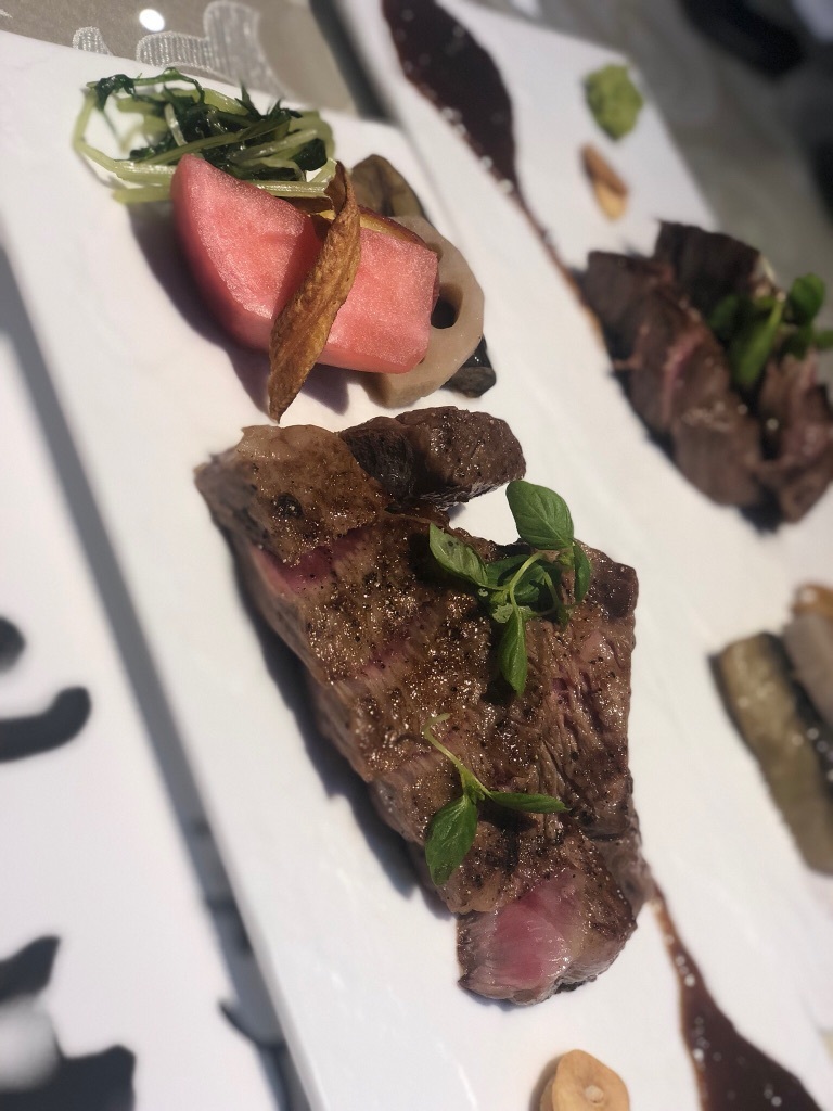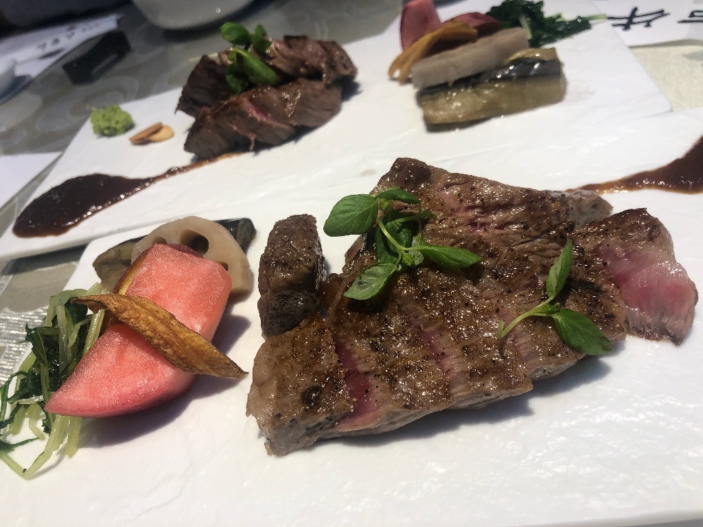 お昼もーたらふく神戸牛のステーキ食べてきたのに