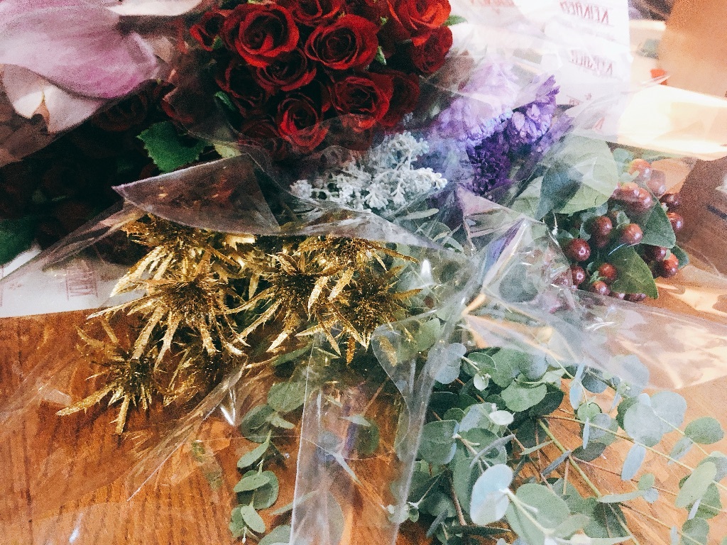 お花を買いに。。。🌹 AYA..E Diary 作成日: 2018.12.10 ママの誕生日だから久しぶりに手作りで フラワーアレンジメントしようかなと☺️❤️早速お花屋さんに💐お花えらぶときってさぁ色合いのセンス問われるから服選ぶのと一緒服のコーディネート組む時と同じぐらいわくわくする❤️まだお花わ初心者だから生けてみないと完成図ってぼんやりしてるけどでもバシッとあった時わめちゃくちゃうれしいよね🐰💓どんなフラワーアレンジメントになるかなぁ❤️