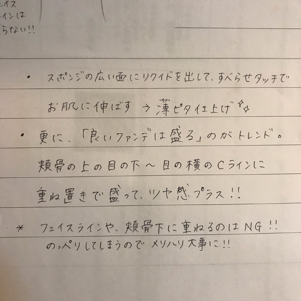 コフレドールさんの「粉塾」に潜入💄 野田華子(のだ はなこ) Diary 作成日: 2019.2.1 https://www.instagram.com/p/BtSwqLzBUKR/昨日伺ったコフレドールさんの「粉塾」すごーーくためになるお話たくさん聞けて楽しかったー!新商品のパッケージも、シンプルですごく可愛い。最初、「粉塾」なのにどうしてパウダーファンデーションやお粉の話じゃないんだろう??リクイド(リキッド)ファンデーションなんて粉の話と真逆なんじゃないかなぁ??🤔🤔🤔なんて、無知な私は思ったんだけどリクイドファンデーションこそ実は配合するお粉が大切だと聞いてそうなんだーー!!!とビックリ。でもそうだよね🤔絵の具だって"そういう色のペースト"って認識しちゃってるけど、元はと言えば鉱物なんかを砕いた粉を色として混ぜてペーストを作り出して着色料としてるわけで。。(今は鉱物とは違うかもだけど)それと同じ原理だよね🤔リクイドファンデーションは主に水と油分とお粉で出来ているそうなんだけど、配合する油分とお粉との相性はもちろん、混ぜる時間、混ぜる速さ混ぜる順番なんかでも全く別のものが出来てしまうためものすごく緻密な研究が必要なんだとか。。。!!実際研究員の方のノートもモニターで見せてもらったんだけど混ぜる時間や速さを少しずつ変えた実験結果を細かくメモしていたり本当に良い意味で人間味溢れる細かい研究が成されててすごいなーーーー( i _ i )と感動。相性の悪いお粉と油分のもの、混ぜる速さの違ったものなどを見本として手の甲でタッチアップさせてもらったりしたんだけど本当に別物みたいにテクスチャーも何もかも違って一番びっくりしたのはお粉の色は変わってないのに、配合する油分が違うだけでカラーのくすみ具合が全く違って、全く別の色みたいになってしまってたり。。。😨化学反応的なものなのか、コスメって奥が深すぎる。。。って改めて思いました✍️他にもメイクアップアーティスト長井かおりさんのメイクアップレクチャーなどがあって真剣にメモりました!笑殴り書き感すごいけど、メモ内容✍️薄、誤字お恥ずかしい🙏なんか足りないと思ったら点を忘れてた😂すごく嬉しかったのは長井かおりさんがタッチアップ時間に回って来て下さってハンドプレスしてチェックして下さった際ファンデーションの塗り方も綺麗でお肌がツヤツヤ!って言って下さったのとお顔が小さい!って褒めていただいて😭(何自慢してねんだけど言わせてーーーー!!!!笑)もちろんお世辞なの分かってるけど面と向かってそんなストレートに褒めていただける機会ってなかなかないから嬉しかった😭お正月明けあたりから密かに顔のリンパマッサージに励んでたのがちょっと意味あったかな😂😂😂笑少し前はとにかくナチュラルにナチュラルに、がトレンドだったけど今は綺麗にお肌につく良いファンデは「盛る」のがトレンドで、その「盛り」もメリハリをつけて、お肌全体にリクイドファンデーションを伸ばしたら目の下(頬骨より上。下に広げるとのっぺりして見える)から目横のCラインに二度つけするとクマやくすみを隠して、薄付きに見えるのに艶があるお肌に見えるんだとか。。✨確かに今までファンデーション後にクマなんかは部分的にコンシーラーでカバーをしてたけど、目の下〜Cラインに広めに2度付けするとハイライト効果もあって顔が盛れて立体感が出る✨ただ2度付けするならはじめからカバー力がありすぎても厚塗り感が出ちゃうし、軽いファンデーションは重ねれば重ねるほどスポンジで削ぎ落としていってる感じがするのではじめの状態が一番良くなかった?ってなってしまう難しいところ。(伝わるかな😭)薄すぎず、濃すぎずのカバー力のファンデーションはこのコフレさんの新発売のリクイドファンデーションかなり良かったです👏!(もちろん個人差あるからサンプルなどあったらぜひ試してね🤭)楽しかった〜😊 http://www.instagram.com/noda.hanako