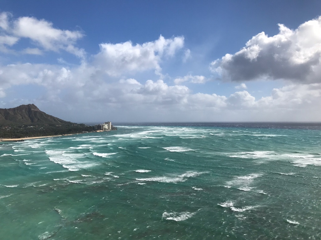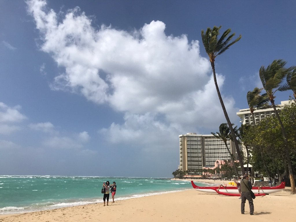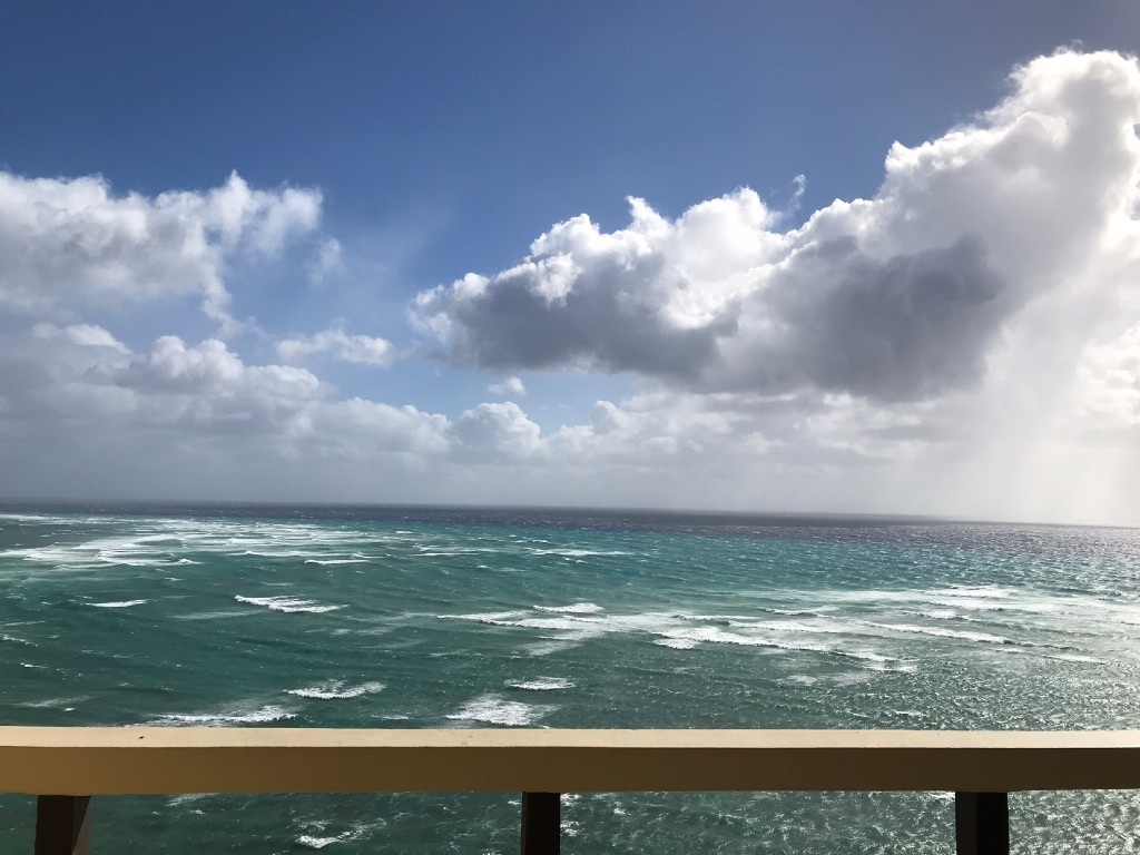 ヤシの木見たら伝わるかな、風の強さ(笑)
