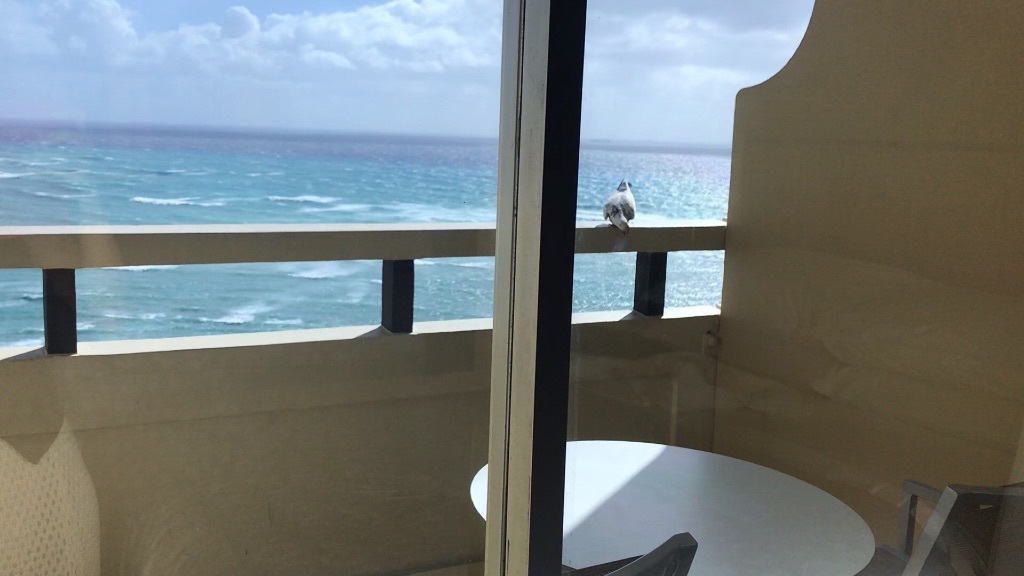 この高さなのに人が外に出るとハトが集まってくる(笑)