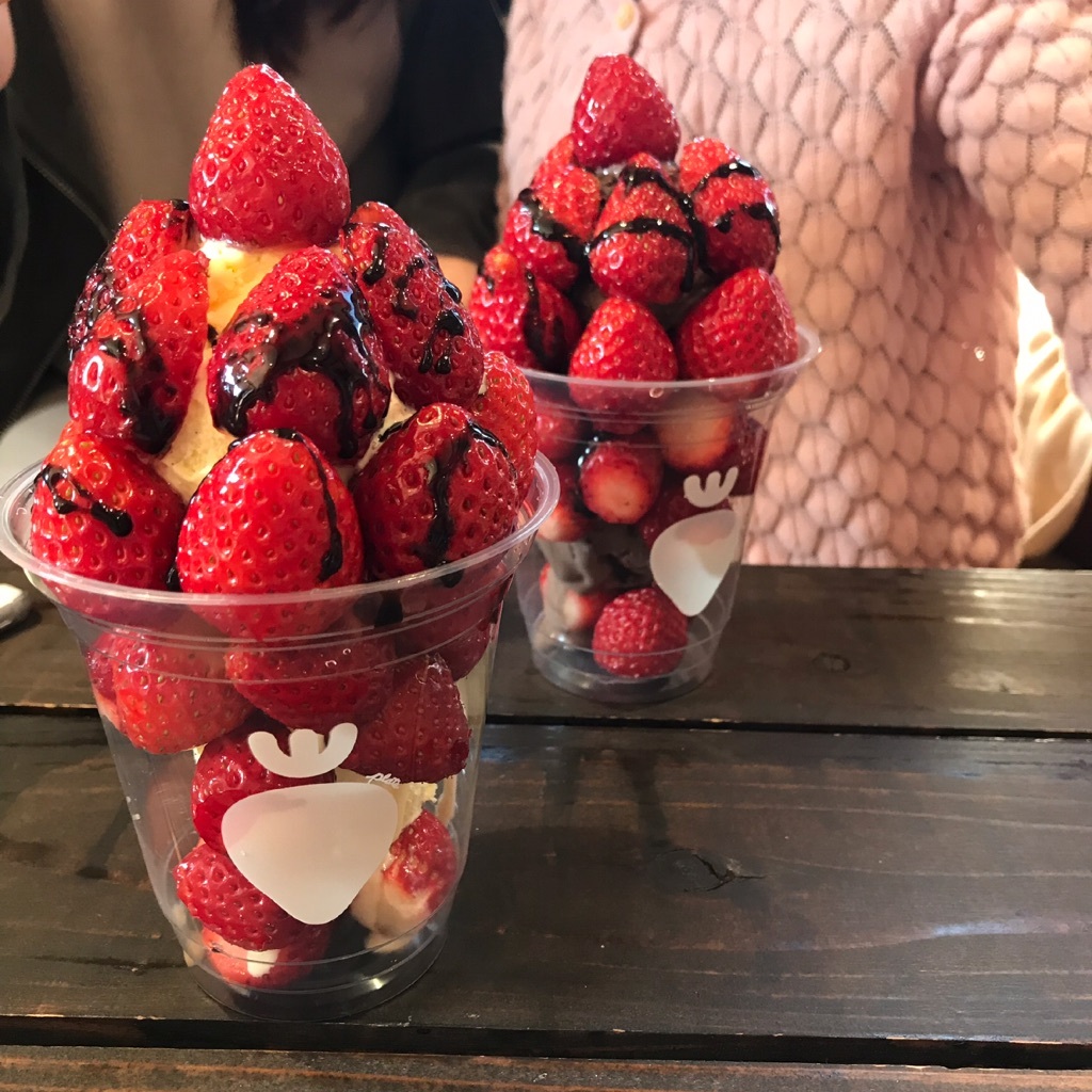 いちごとパフェ食べることをいちご狩りだよ〜☺️って教えといた(笑)