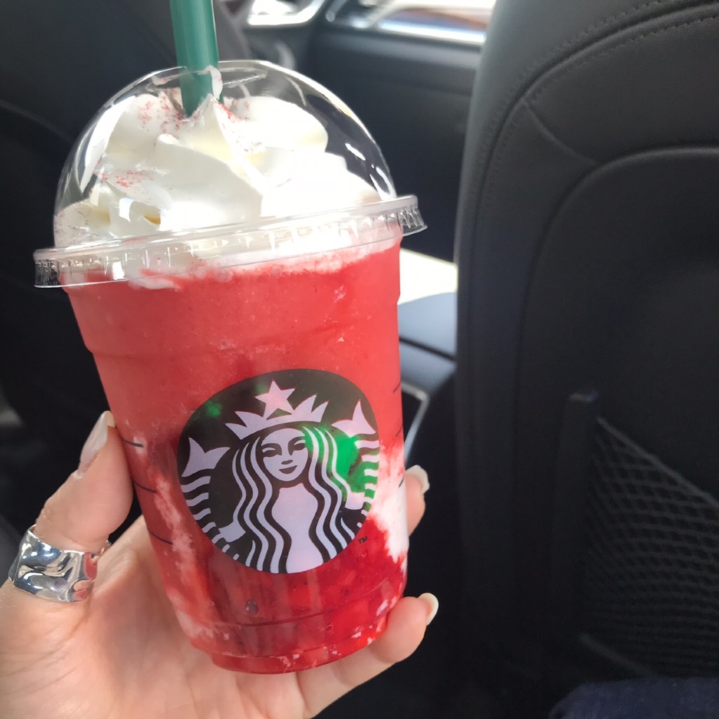 今日から、ストロベリーフラペチーノ始まったかドライブスルーして出勤🍓