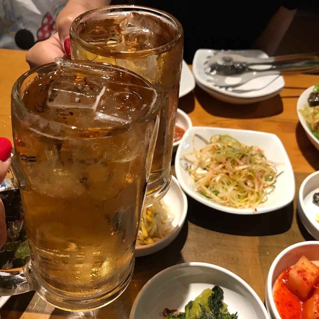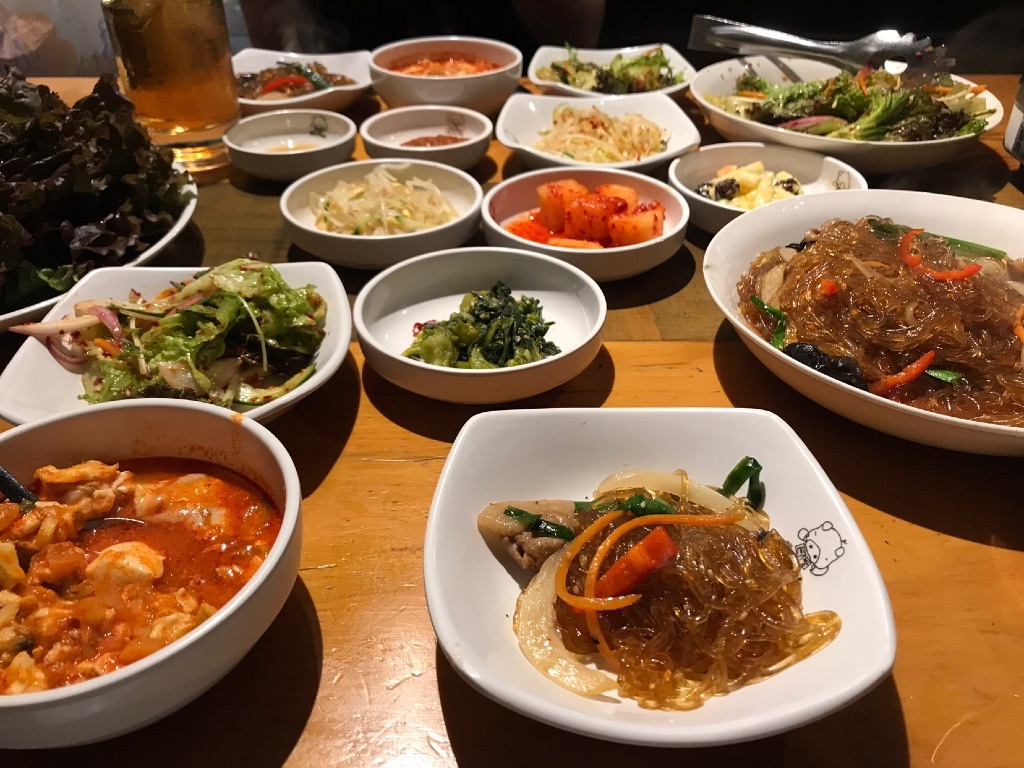 サムギョプサルと、色々頼んだらテーブルいっぱいになって女2人で頼む量じゃないね。🤣