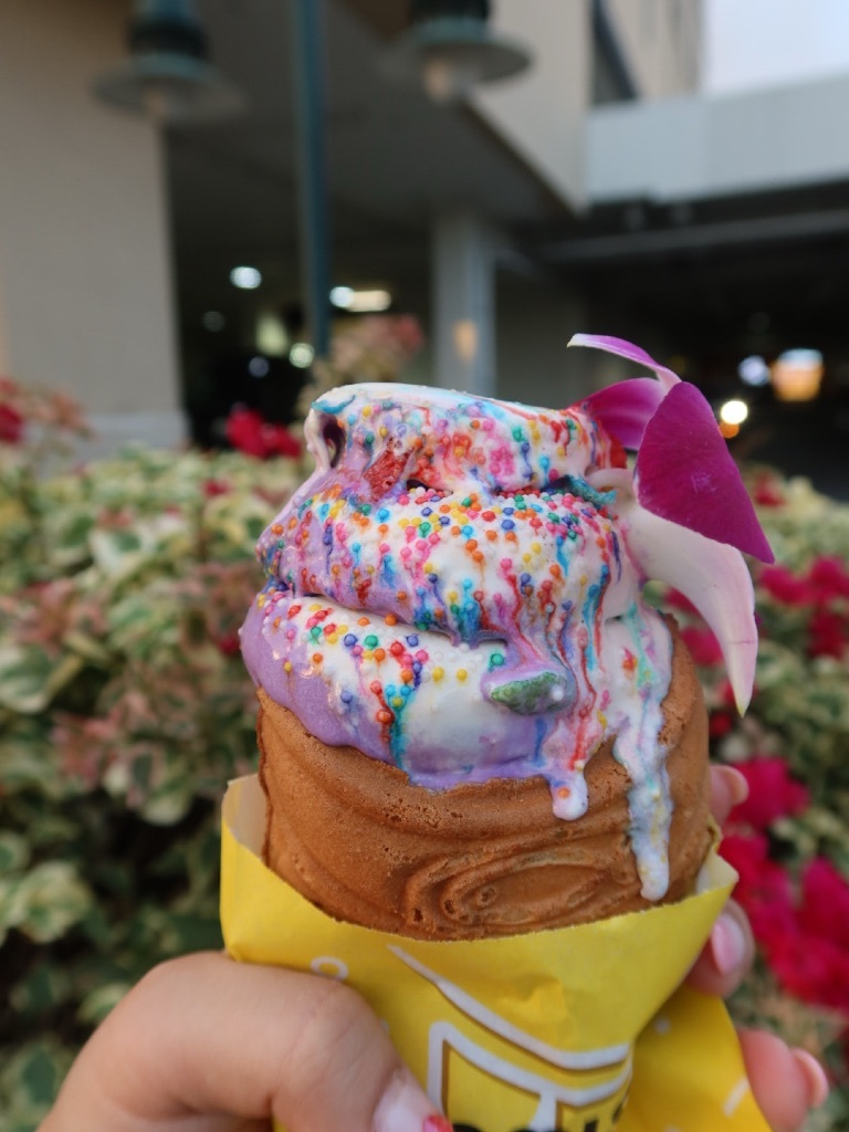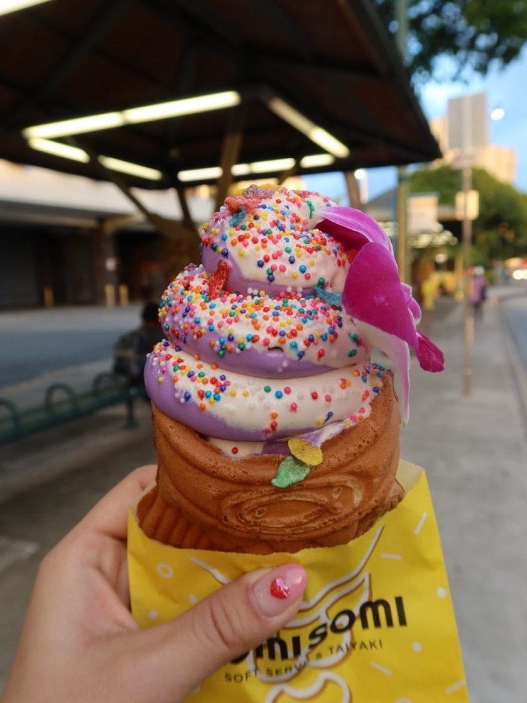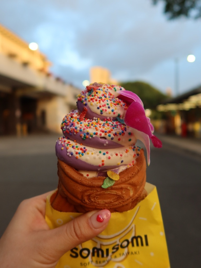 ハワイ👙ショッピング🌺🌴 まゆまゆ Diary 作成日: 2020.2.22 ハワイショッピングといえばアラモアナショッピングセンター🌴🌺アラモアナでお買い物休憩にインスタで教えていただいた鯛焼きアイス🍨 これが美味しかった〜😍💗somisomi🍨タロとミルクティーのミックス!鯛焼きの生地がめっちゃ美味しかったよ😍1階のパーキング沿いにあります💗おすすめ〜🤤🌈🌈🌈