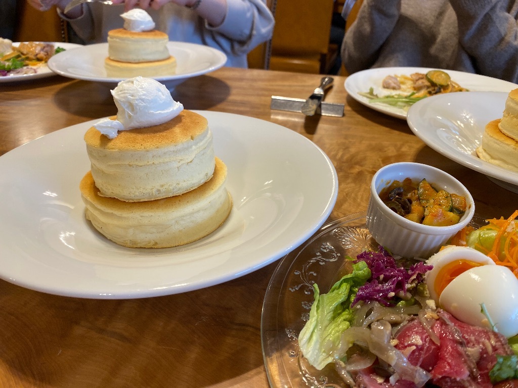 サラダもパンケーキも美味しくて