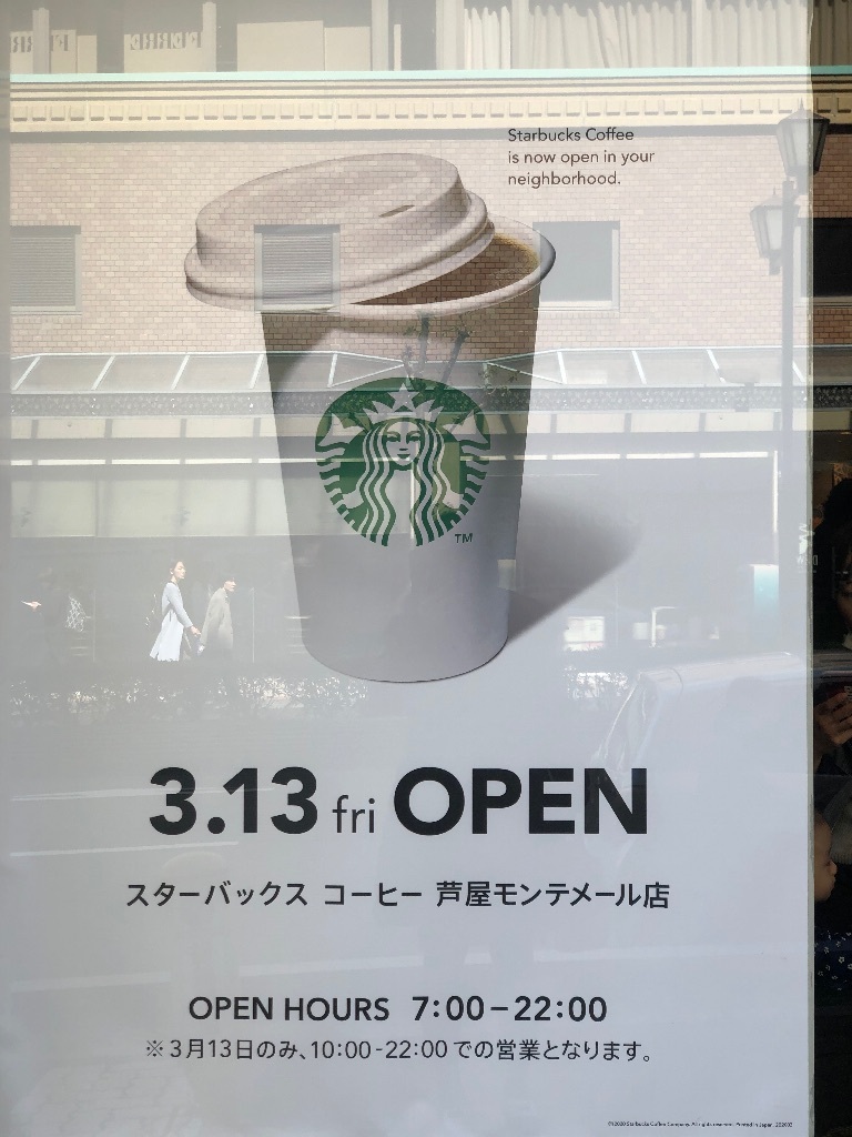芦屋に革命が起きた。 まゆまゆ Diary 作成日: 2020.3.12 衝撃の芦屋にスタバ今までなにがなんでもできなかったのに!モンテメールにオープンしました🥺これ、すごいことなの!笑今日は、プレオープンプレオープンは招待でもなく大丸カードかジョイワンカードあれば誰でも入れます。嬉しくてさっそく、抹茶フラペチーノ頼むやつ。しかもベンティーサイズ 笑