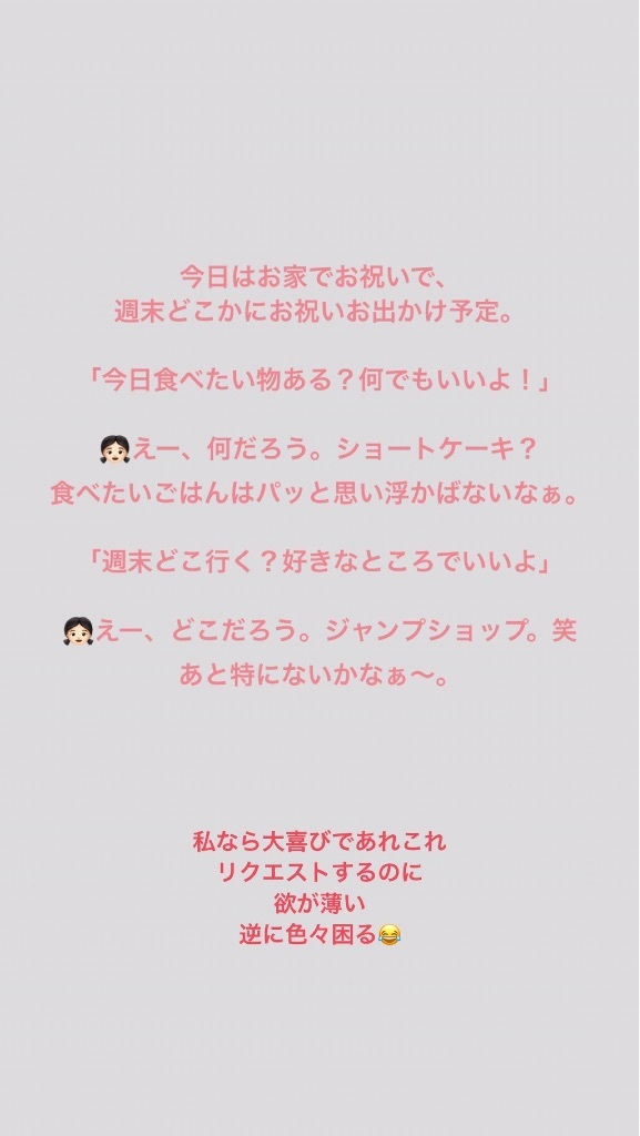 14歳 happy birthday💜💛💙 野田華子(のだ はなこ) Diary 作成日: 2020.6.2 にいな14歳の誕生日😊💕反抗期とかではなくいたって普通に考えてくれてて本気でこんなサバサバこえて、パサパサした回答。笑結果、手巻き寿司に🍣🤣もう14歳かぁ・・・早すぎる。私より色々本当しっかりしてるし最近は頼ってしまう事たくさん。毎日ありがとうね✨✨また写真載せまーす☺️💕二の腕ダイエット中💪二の腕着圧はこれをつけてるよ👇 スリメディ自粛生活中6週間で-3.3kg👏2本目突入💕スーパーフードがたくさん入った置き換え用ドリンク コンブチャクレンズインスタはこちら http://www.instagram.com/noda.hanako