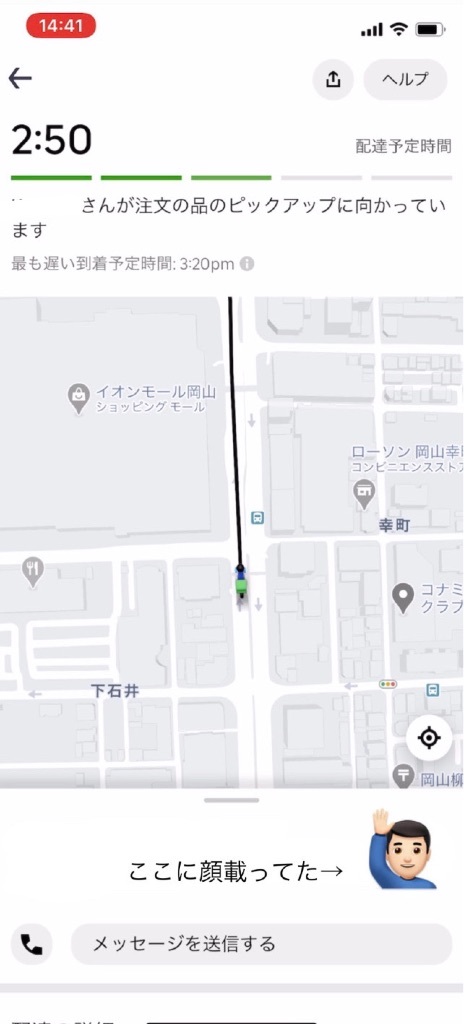 インターホン鳴って、玄関先まで持ってきてくれて、届けましたっていう玄関先に置いてる写真が届いた^^