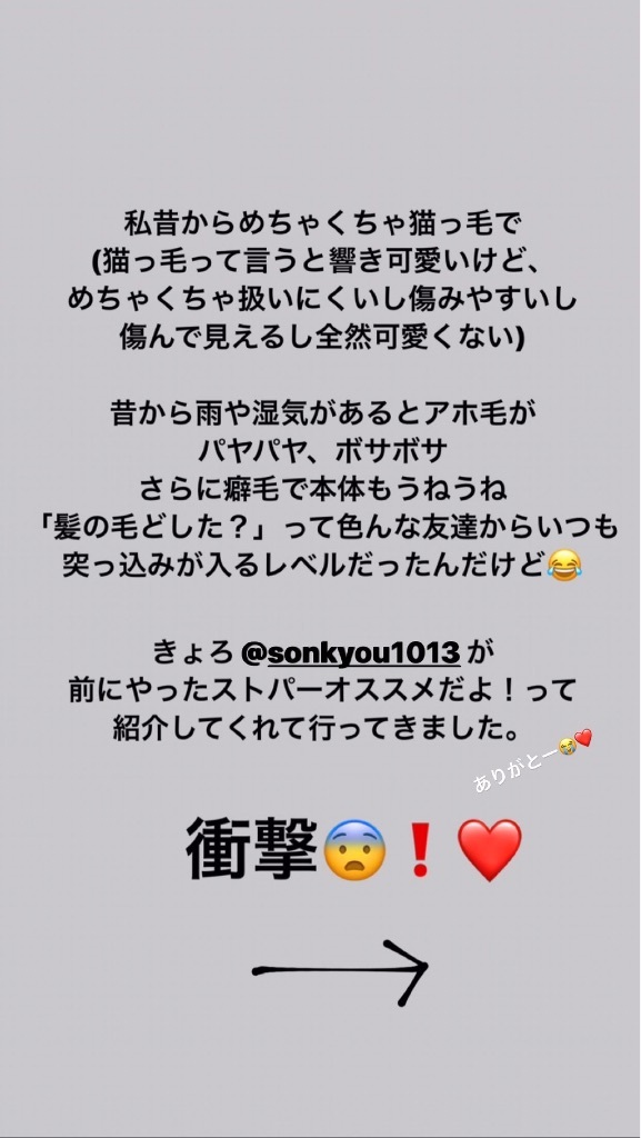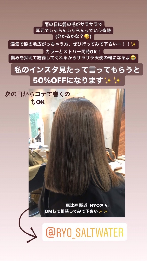 雨や湿気で髪の毛ボサボサになる方!必見! 野田華子(のだ はなこ) Diary 作成日: 2020.7.13 ストーリーに載せたもの✨✨梅雨の時期、雨の日や湿気で髪の毛ボサボサで悩んでる方にオススメ✨✨つるつるすぎてずっと触ってる🤣恵比寿駅の駅近アットホームで赤ちゃんとも子どもとも同伴OK✨✨担当RYOさんです。お店のインスタに👇 ✂︎DMしてみてね✂︎私のインスタ、ブログを見たって言っていただけたら50%OFF太っ腹😳💦ありがとうございます🙏11万通りの組み合わせから自分だけのスキンケアを作れるよ✔️定期回数縛りなし✔️全額返金制度あり HOTARU 二の腕ダイエット中💪二の腕着圧はこれをつけてるよ👇 スリメディインスタはこちら http://www.instagram.com/noda.hanako