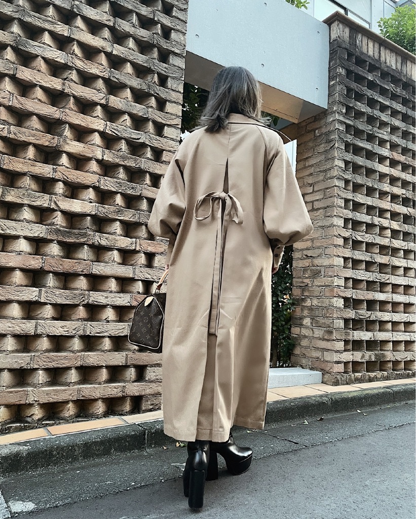 ぽわん袖とバックリボンは定番トレンチの良いデザインそのまま🤎🤍