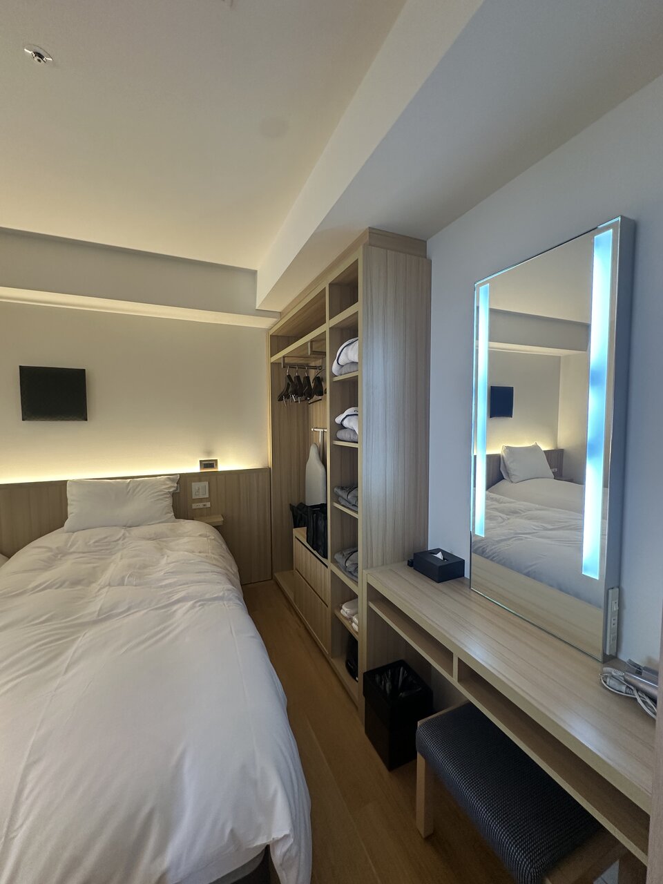荷物を広げたり、身支度を整えたりと、快適に過ごせる空間でした。