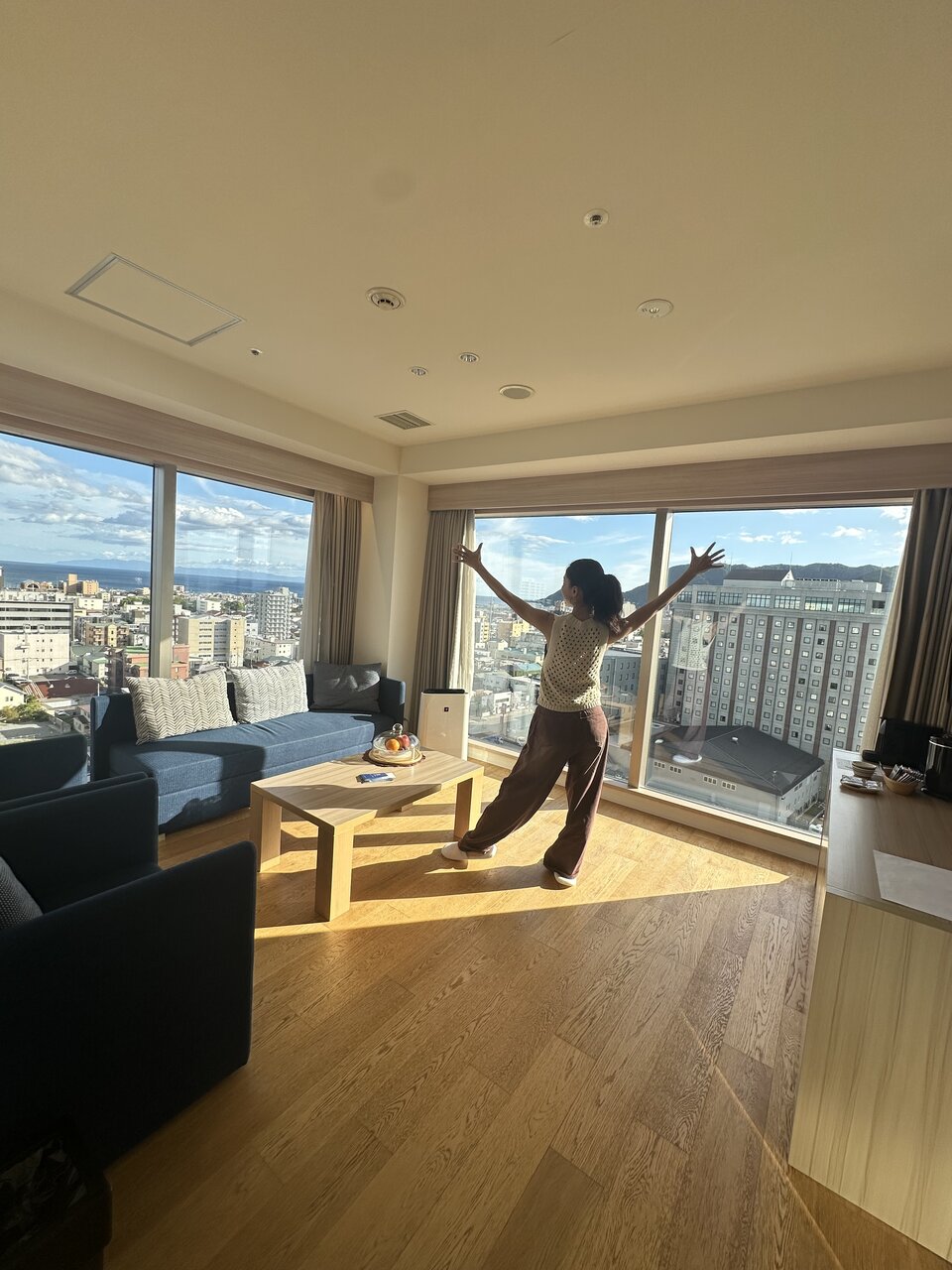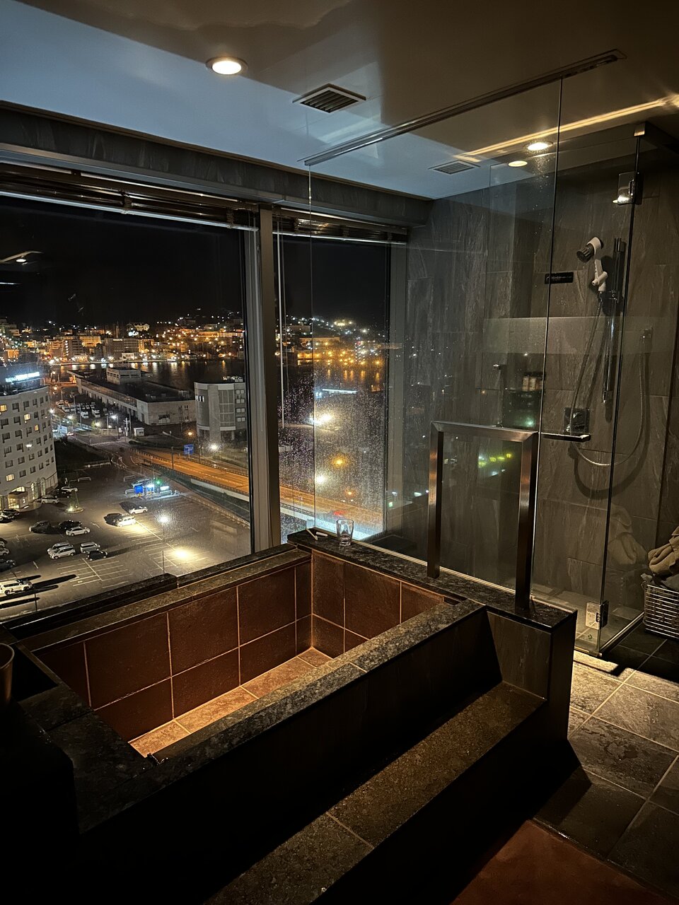 函館山ビューを眺めながら温泉に浸かり、ゆったり広々としたお部屋で過ごす時間は、心も体もとろける至福のひとときでした。