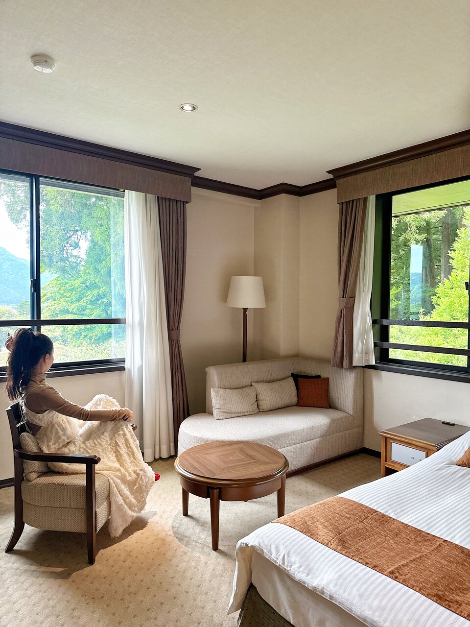 その期待を裏切らず、3階のお部屋からは、芦ノ湖や美しく整備された庭園、そして箱根の山々まで一望できる絶景が広がっていました🍃✨窓が二方向にあることで自然光もたっぷり✨