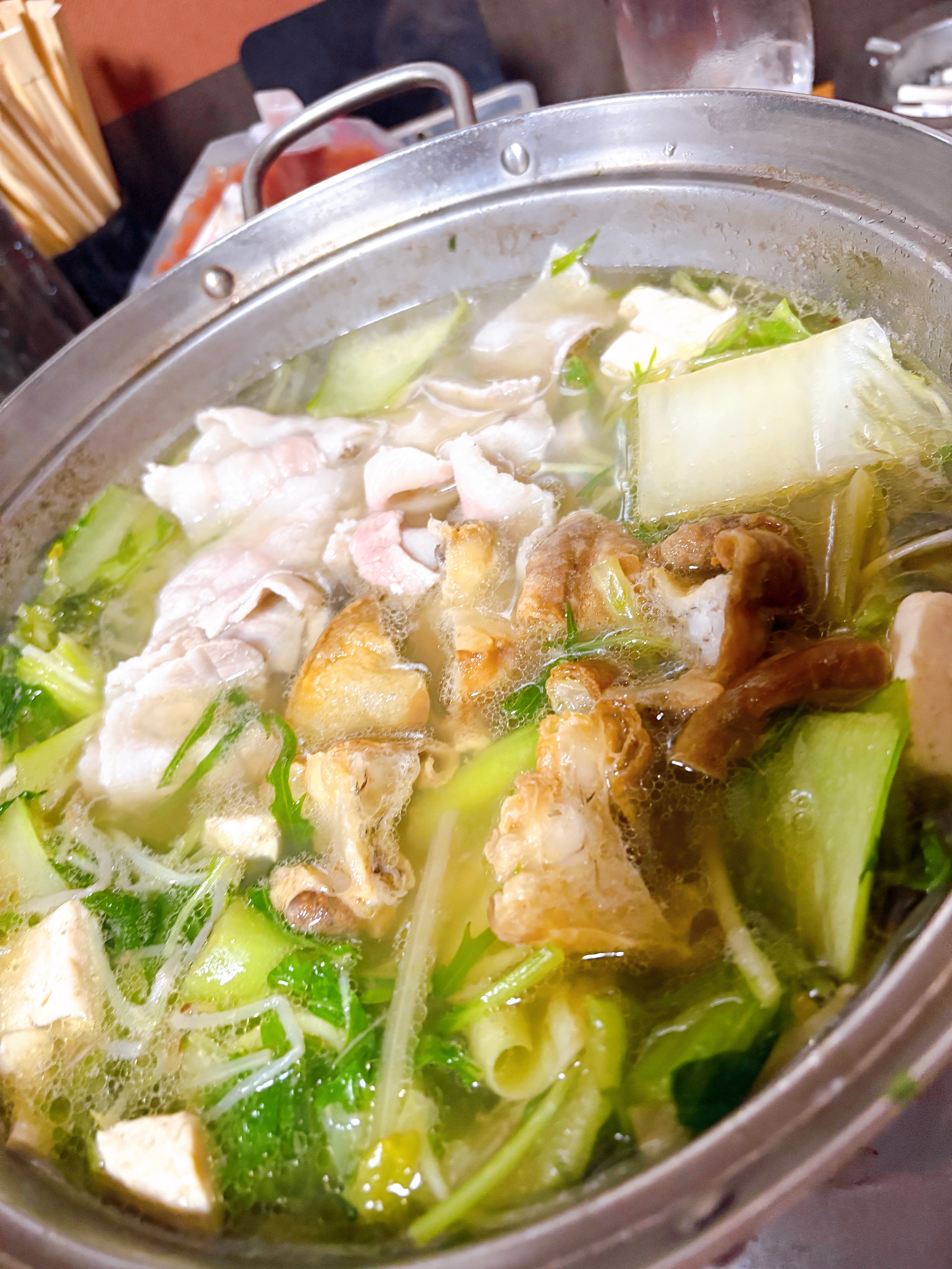 お鍋にはアグー豚や油かすもいろいろ追加して